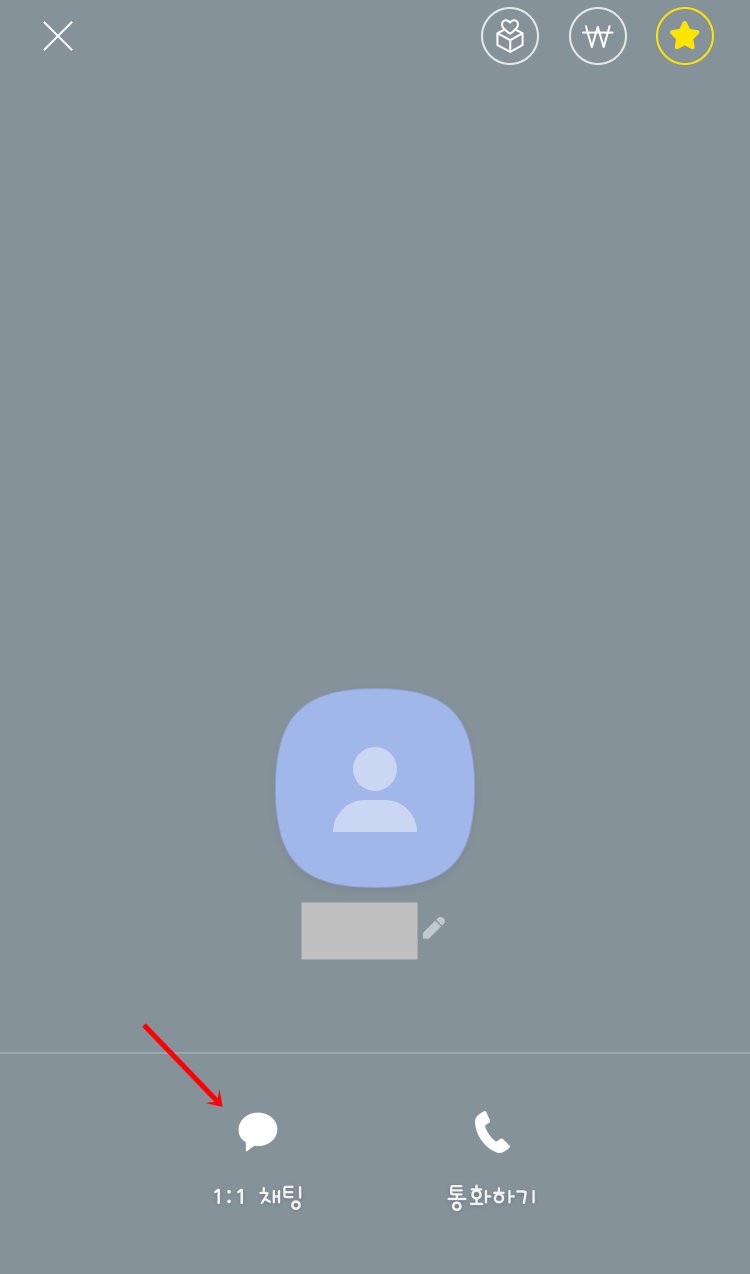친구 탭에서 비밀 대화를 하고 싶은 친구를 선택하구요. 아래 쪽에 1:1 채팅을 눌러 줍니다.