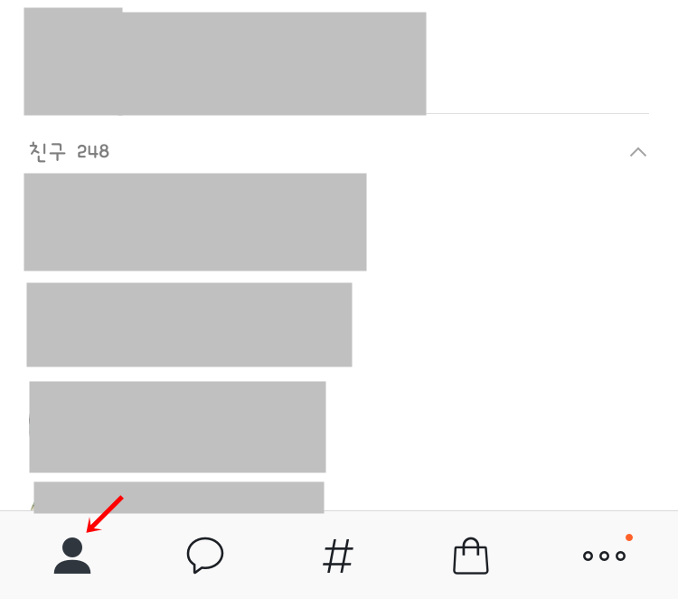 카톡 채팅방 숨기기 2번째 방법은 알림을 보이지 않게 하는 방법인데요. 카카오톡 메뉴 중 제일 아래쪽 점 세개 모양의 메뉴 보기를 눌러 주세요.