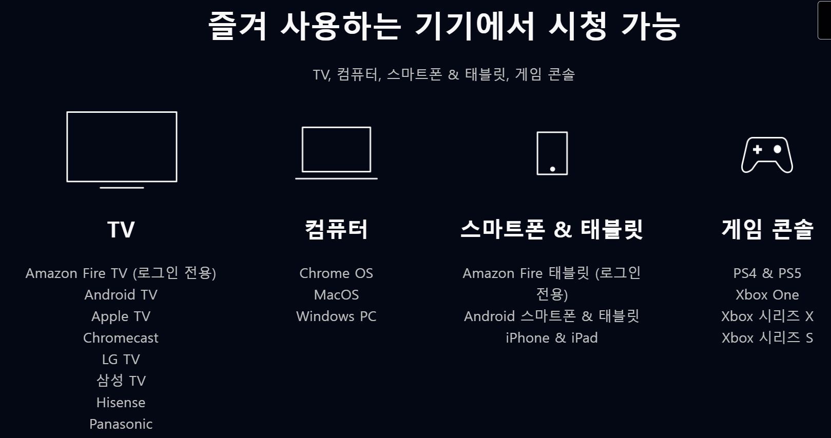 디즈니플러스는 스마트폰이나 태플릿으로 볼 수도 있고, 스마트 티비나 컴퓨터로 시청할 수도 있으며 플레이스테이션이나 XBOX 와 같은 게임 콘솔로도 볼 수 있어서 다양한 기기에서 시청이 가능하다고 합니다