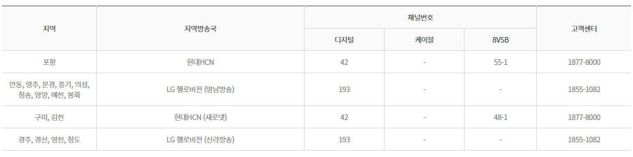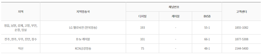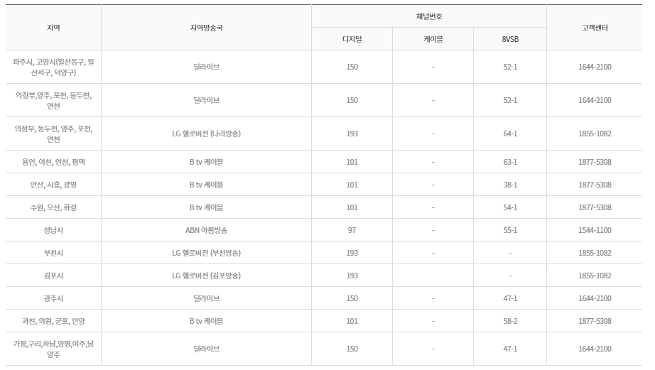 케이블 방송국에서 엠비씨 엠 채널을 보려면 지역별로 다른 번호를 이용해야 하는데요. 지역별 mbc m 채널 번호는 다음과 같습니다.