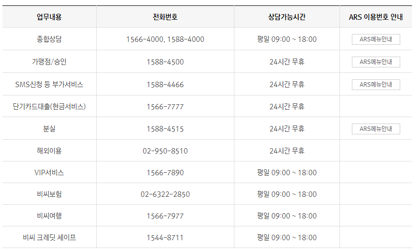 비씨카드 고객센터 전화번호