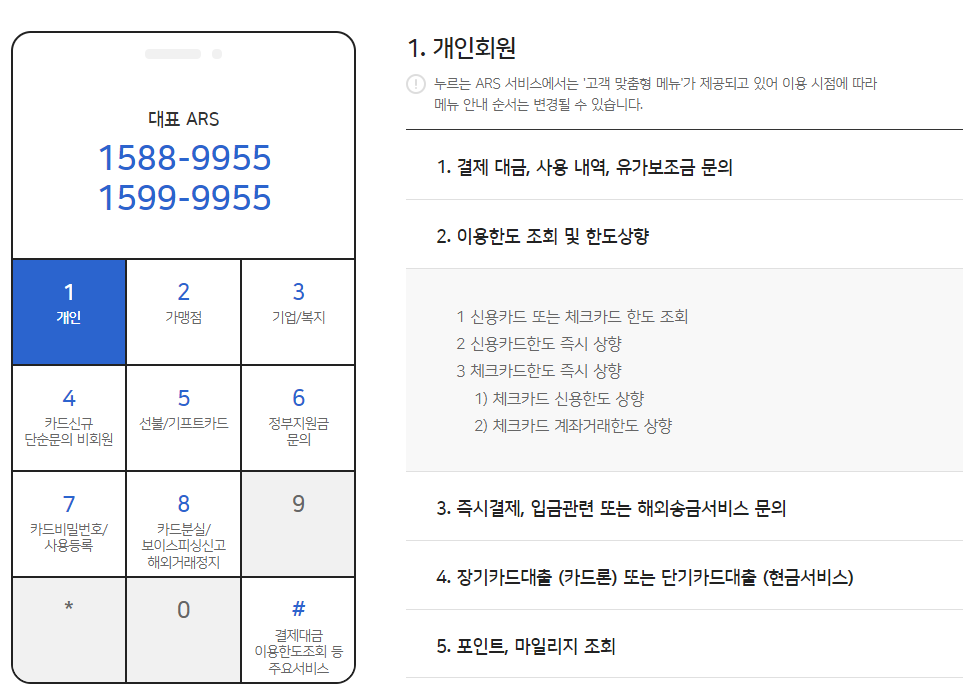 누르는 ARS 서비스에서는 고객 맞춤형 메뉴가 제공되고 있어서 메뉴 안내 순서가 변경될 수 있다고 하니 참고해 주시면 좋겠습니다.